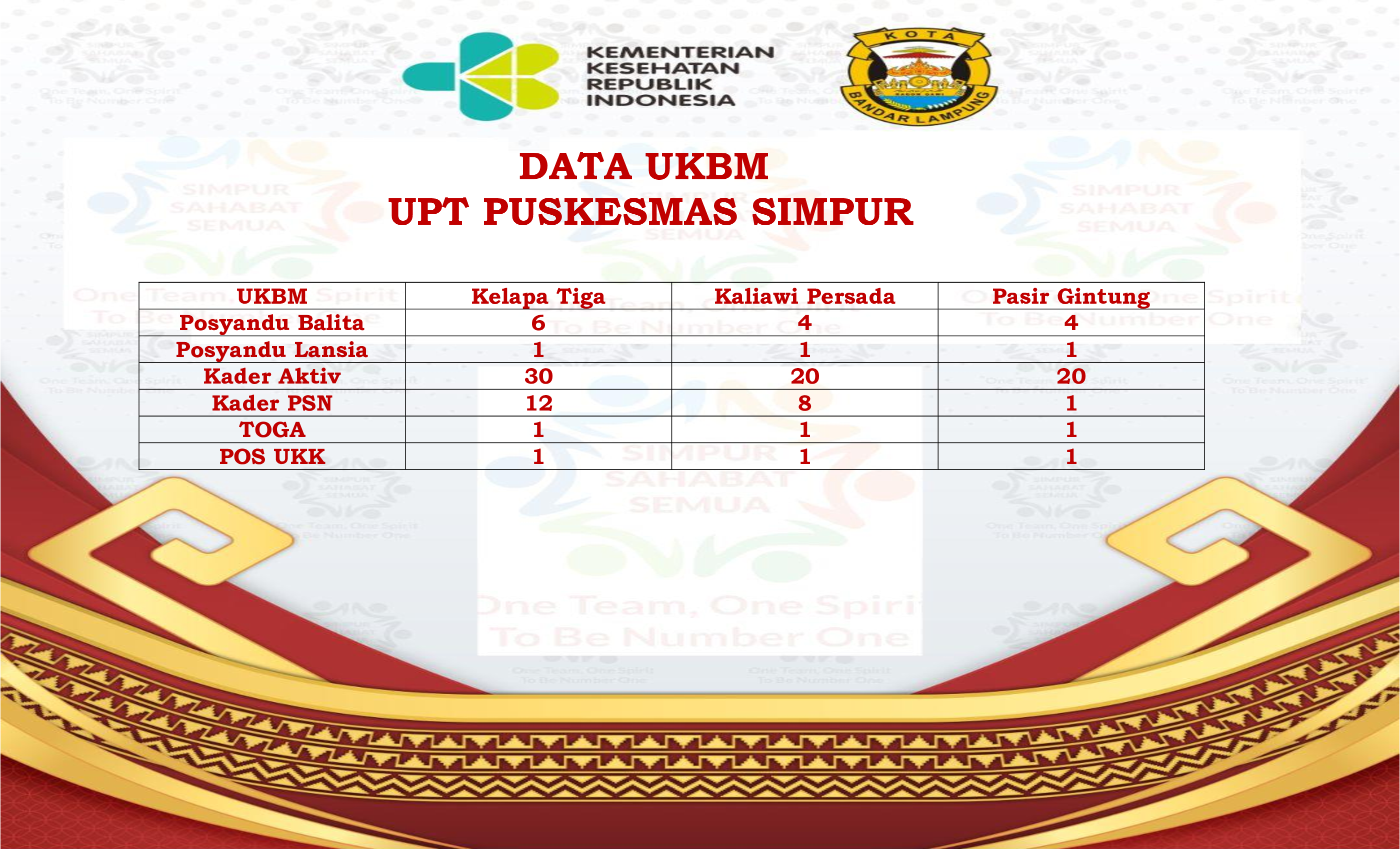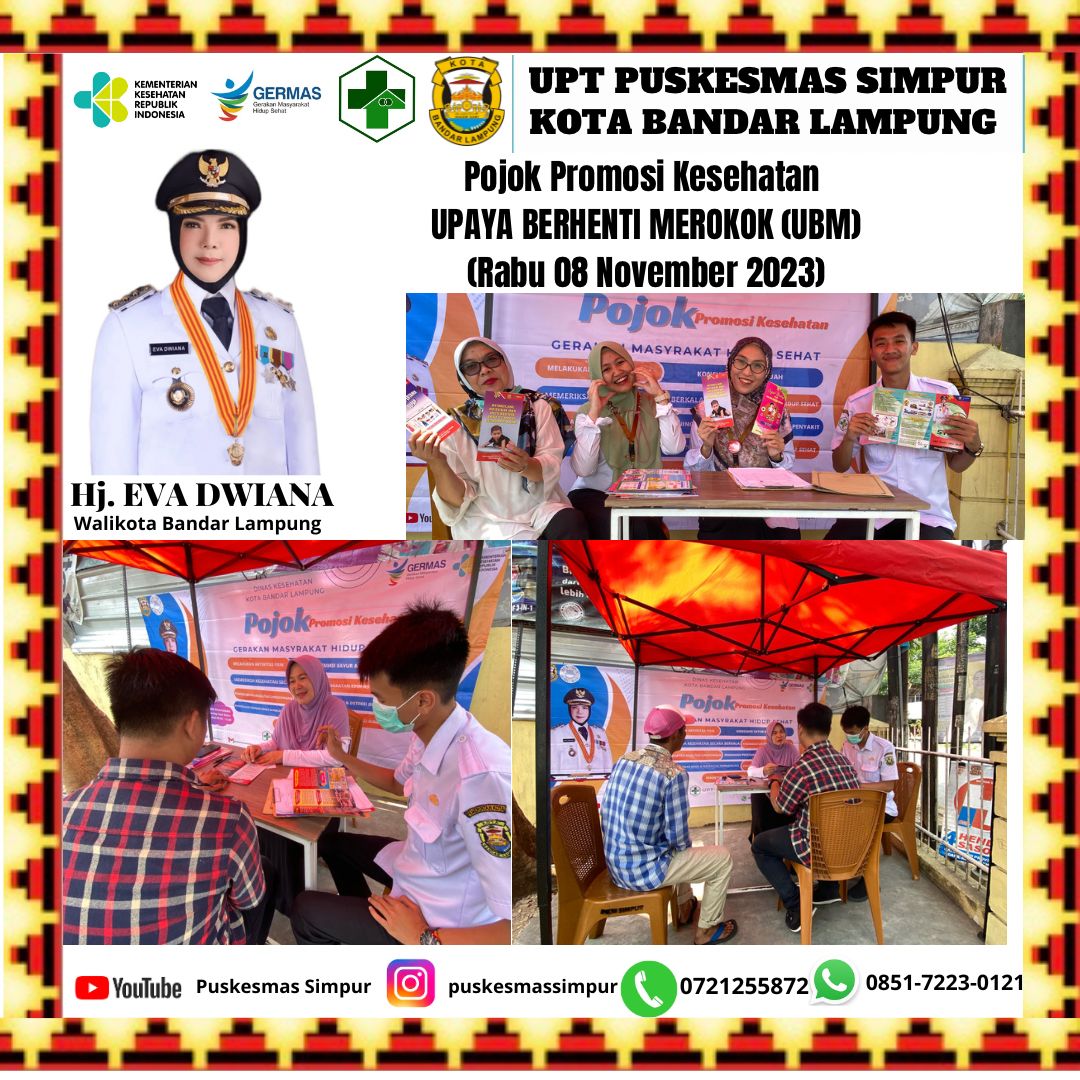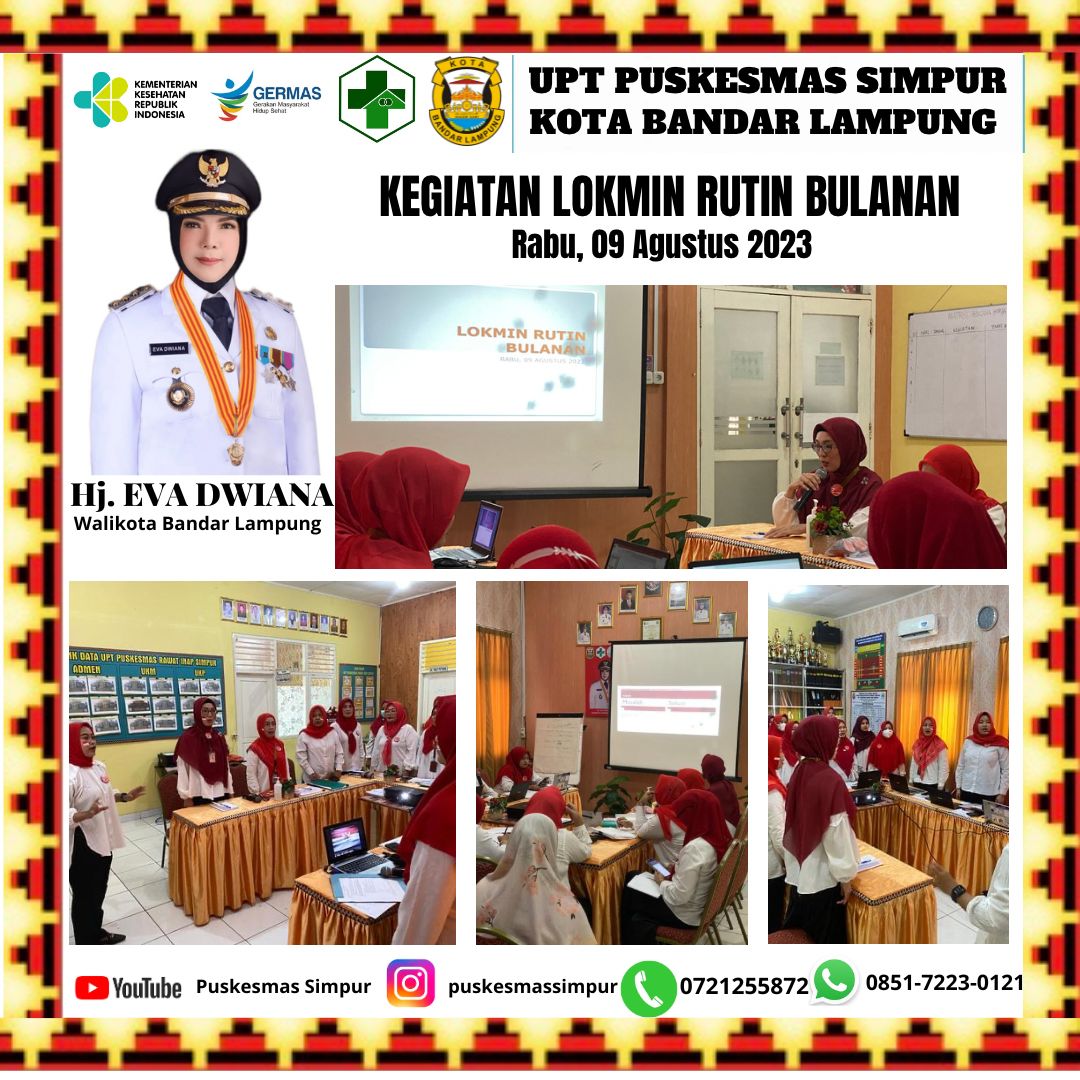 Lampung (HO) - Puskesmas Simpur memiliki banyak inovasi diantaranya DR DIANA (Dari Remaja Demi Ibu Atas Nama Anakku), kemudian CORLA (Counseling ODHIV patuh ARV VL Aman), GEMA ...