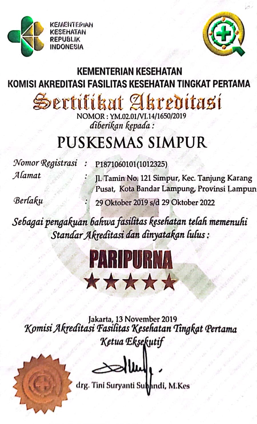 Lampung (HO) - Unit Pelaksana Teknis (UPT) Puskesmas Rawat Inap Simpur salah satu Puskesmas Rawat Inap di Kota Bandar Lampung dengan akreditasi paripurna mendapatkan...